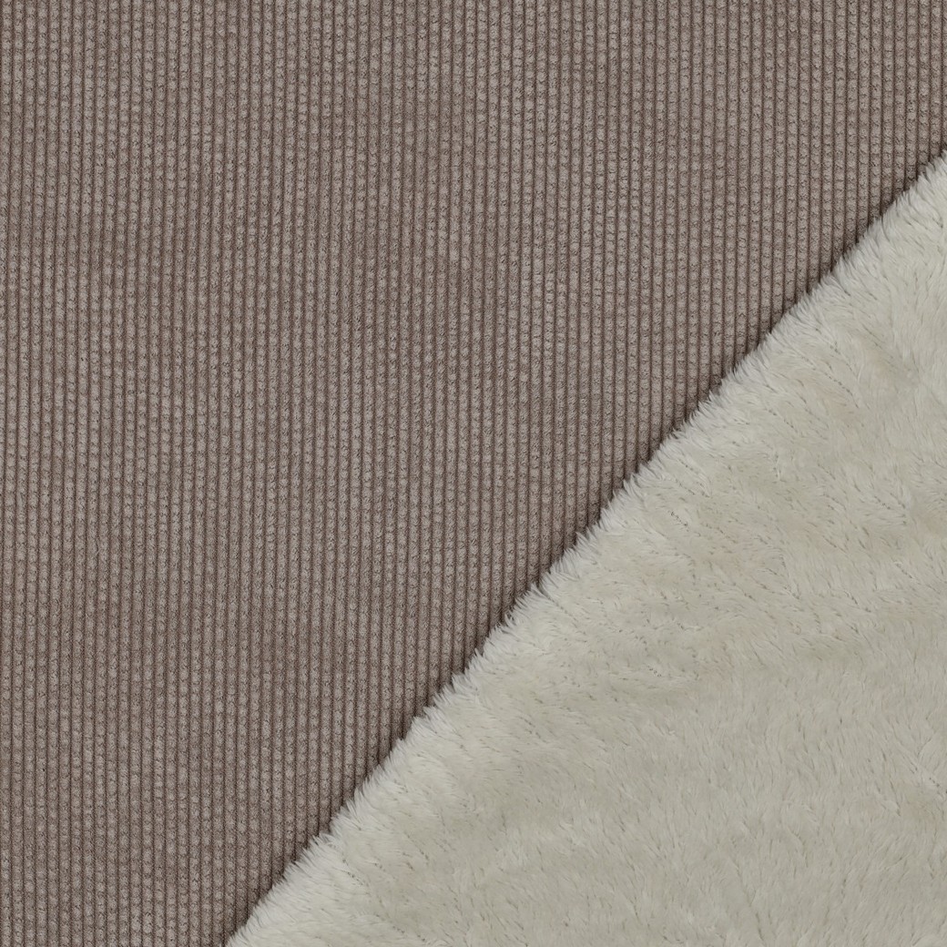 Il lato in velluto a coste dona un look disinvolto e alla moda al tuo guardaroba, mentre il lato teddy assicura comfort e calore – ideale per tutti i progetti in cui contano allo stesso modo estetica e comodità. Perfetto per giacche e cappotti casual, coperte e cuscini coccolosi, sacchi per passeggino confortevoli o teneri pupazzi da coccolare.