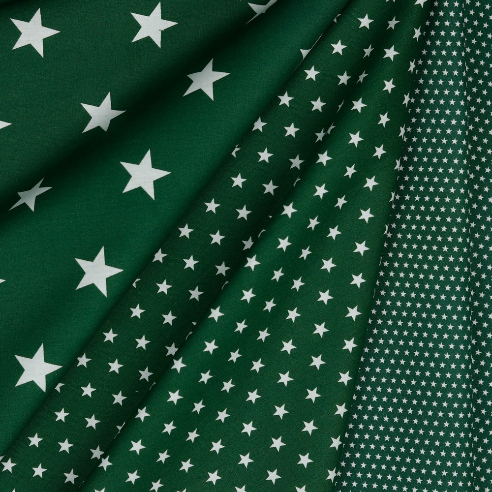 Cotone popeline - mini stelle verde scuro bianco