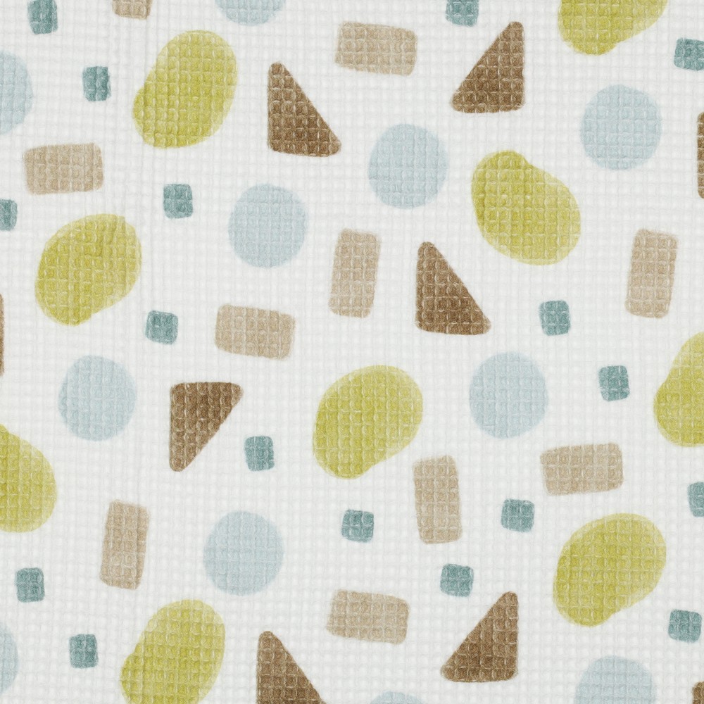 Questo tessuto waffle unisce grafica moderna e struttura accogliente: sul fine motivo waffle leggermente in rilievo, forme stilizzate in un verde fresco danzano su uno sfondo bianco e pulito. I motivi delicati, con un tocco geometrico, risultano allo stesso tempo giocosi e puristi – perfetti per chi ama la semplicità ma con un tocco speciale.