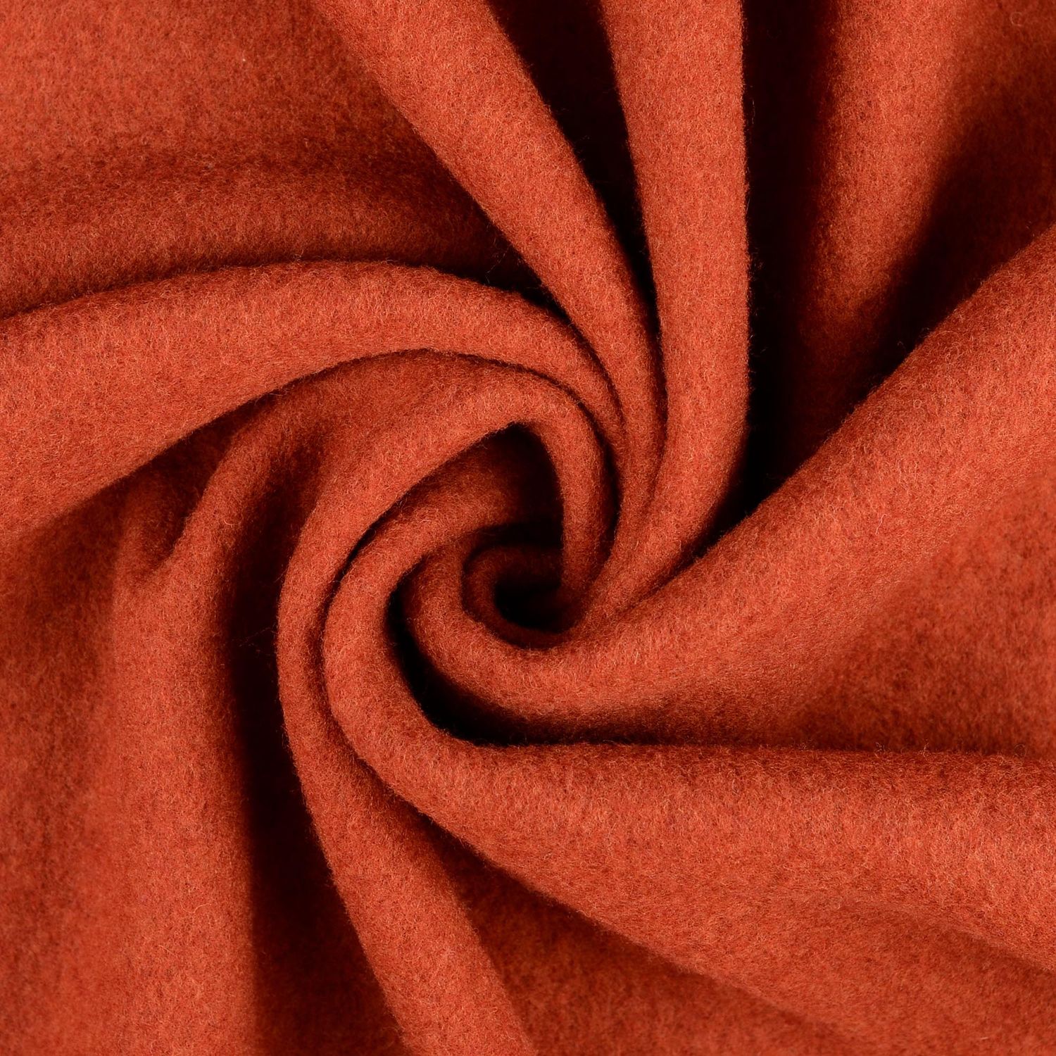 Un sogno in caldo rame: questo pregiato fleece in lana incanta con il suo tessuto meravigliosamente morbido, leggermente peloso, e un aspetto naturale leggermente melangiato. Il ricco color rame ricorda le foglie autunnali e le serate accoglienti davanti al camino, portando subito calore e comfort a ogni progetto di cucito.