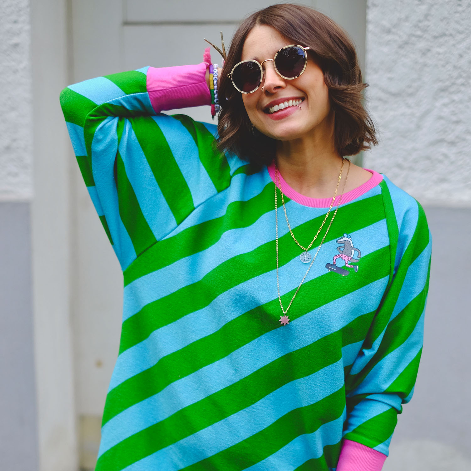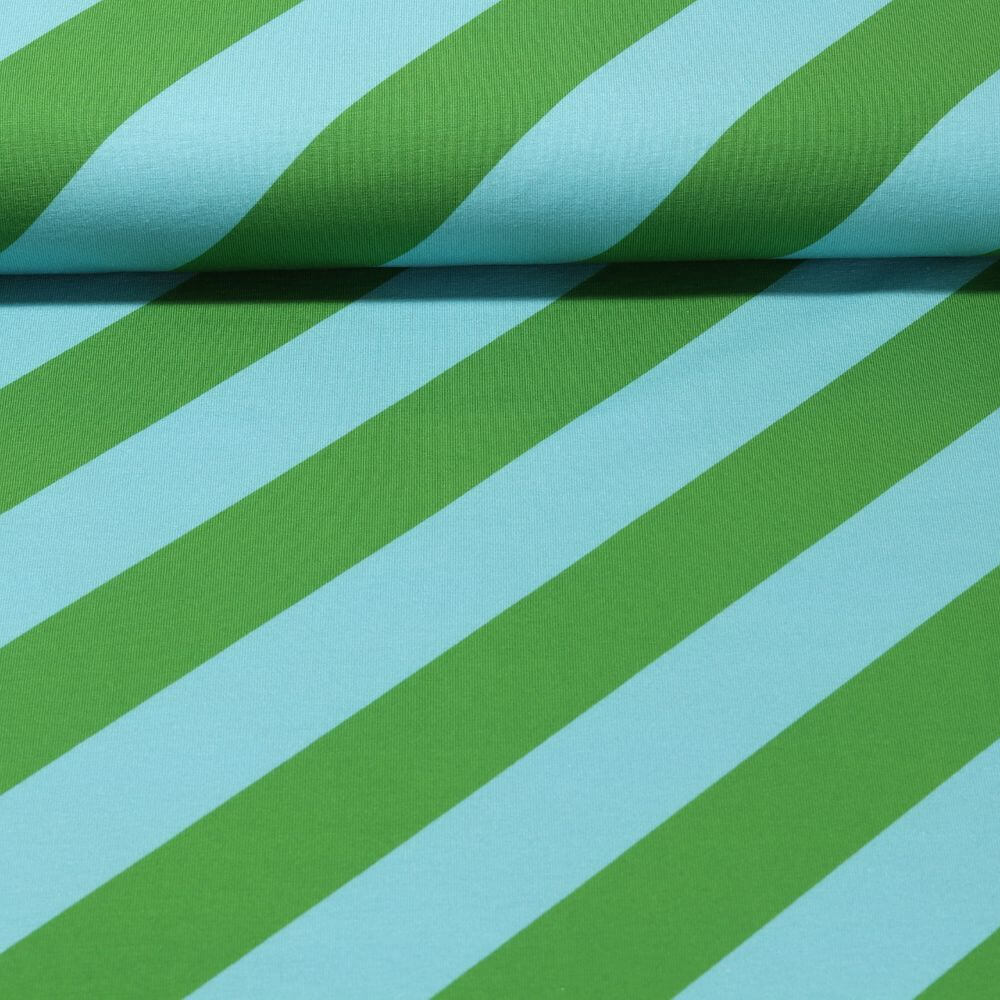 Fresca, chiara e piena di energia: questa maglia organica dona colore a qualsiasi progetto di cucito. Il disegno si presenta in ricche tonalità di turchese e verde, che ricordano l'acqua cristallina e i rigogliosi prati estivi. Le strisce sottili e uniformi conferiscono al tessuto un look moderno e senza tempo che può essere combinato in modo meraviglioso.