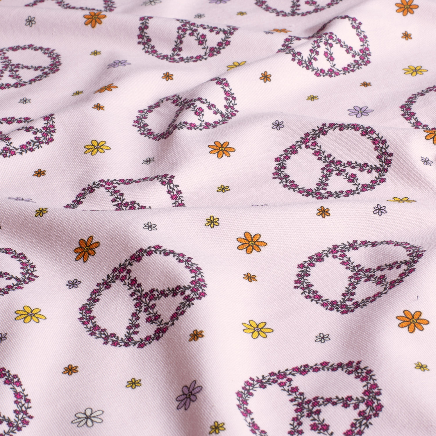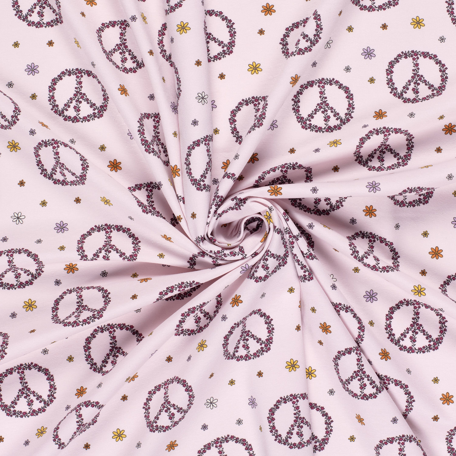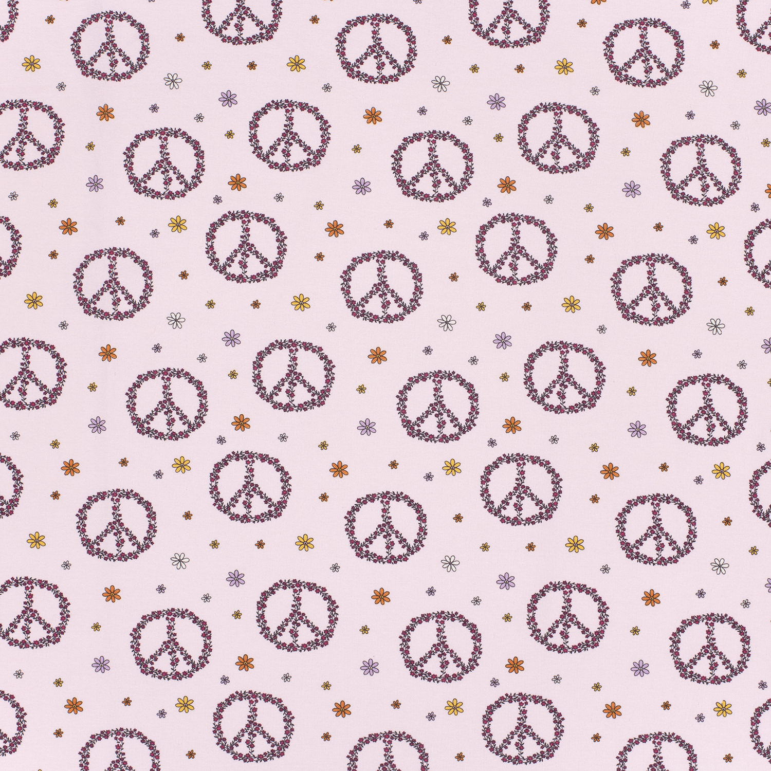 Questa incantevole maglia dona pura armonia ai tuoi progetti di cucito: Piccoli segni di pace stilizzati in caldi colori naturali e pastello danzano su una delicata tonalità di rosa. Un delicato crema, un morbido beige, un accenno di giallo senape e un sottile rosa scuro conferiscono al disegno un aspetto moderno e giocoso.