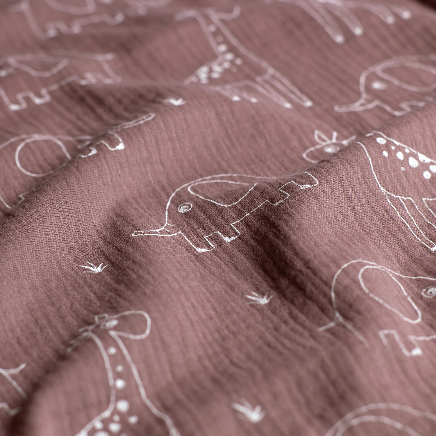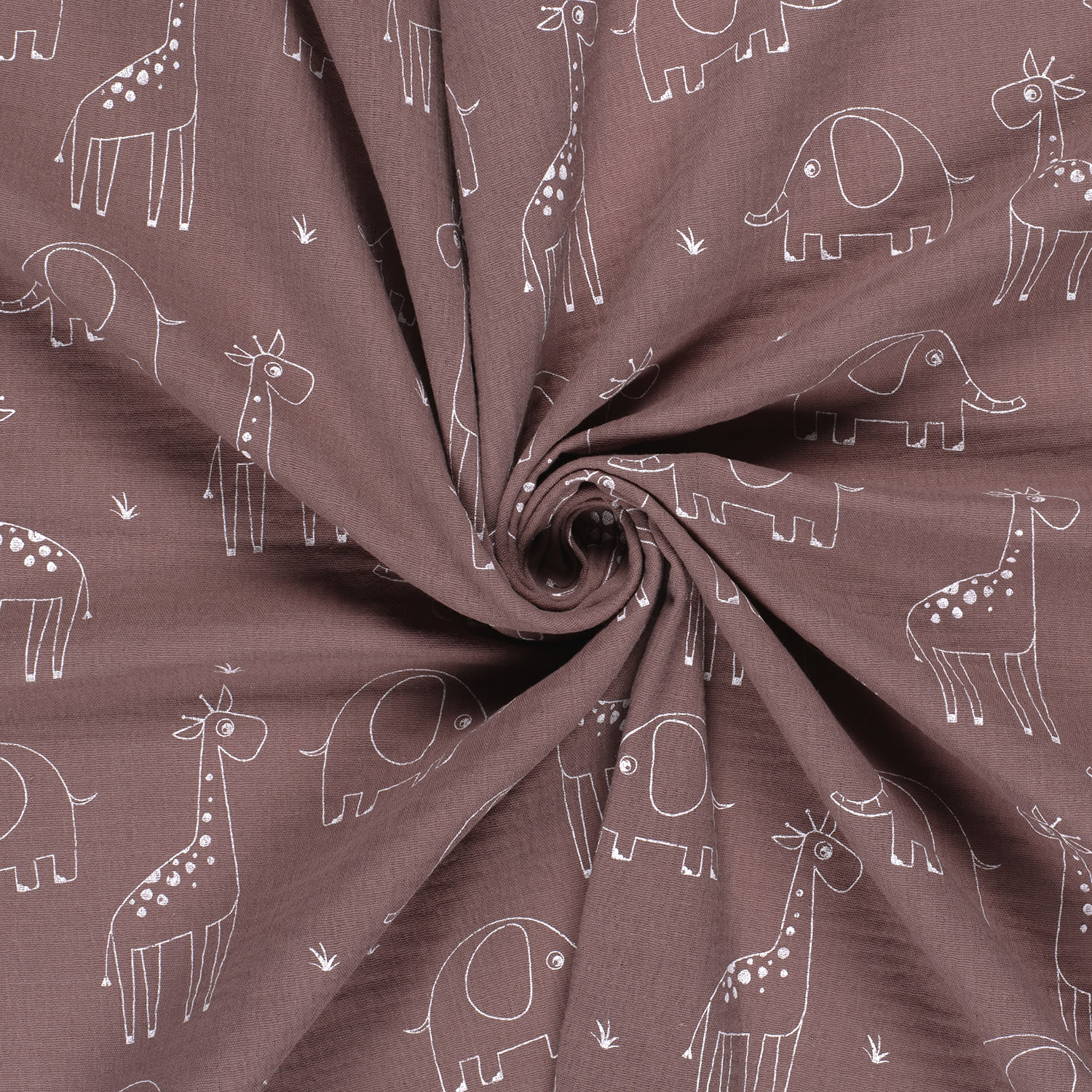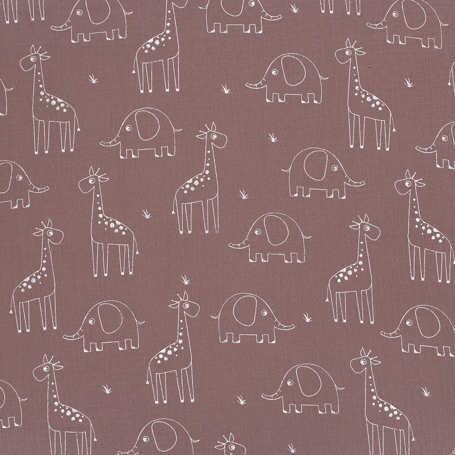 Mussola di Cotone - Elefante e Giraffa su Mauve
