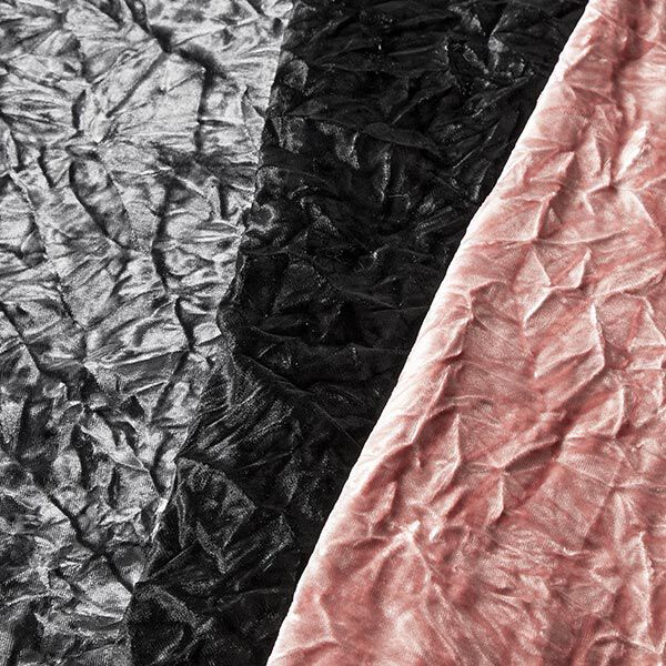 Questo comodissimo tessuto in velluto è meravigliosamente elastico, ha una superficie soffice e una brillantezza elegante.