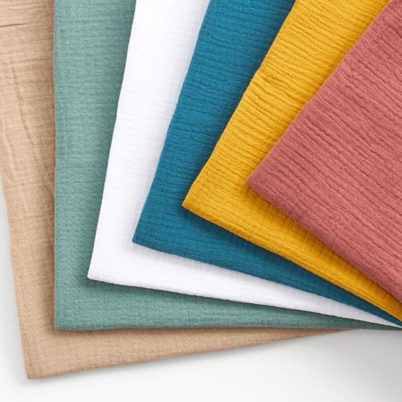 - MUSSOLINA: utilizzata un tempo per i pannolini in tessuto o i bavaglini coprispalla, questo doppio tessuto increspato, detto anche mussola o doppia garza, oggi è assolutamente di moda per i capi di grandi e piccini. Con la mussolina puoi creare anche meravigliosi vestiti, abiti a tunica, abbigliamento bambino e tanto altro ancora!