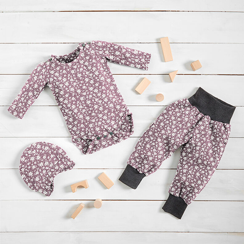 jersey di cotone Fiorellini bicolori – rosa antico scuro