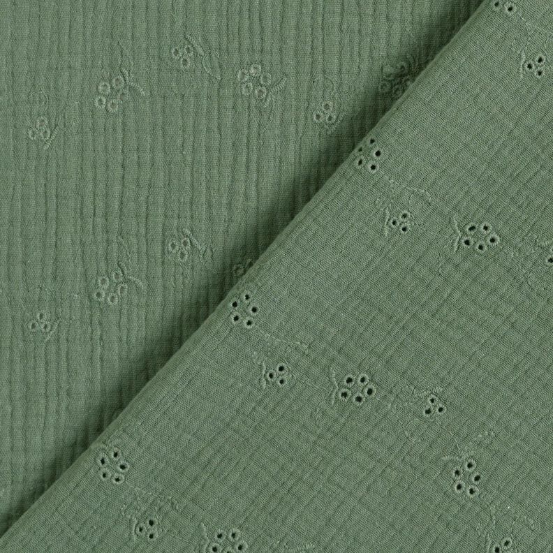 mussolina / tessuto doppio increspato ricami a giorno Tralci di fiori – verde scuro
