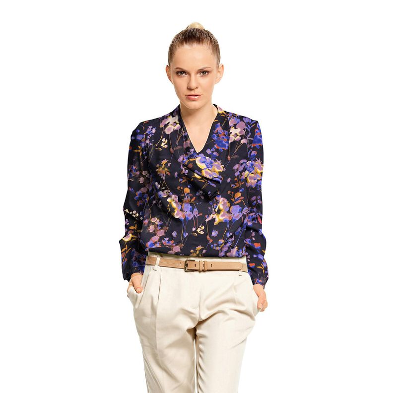 Tessuto di viscosa Fiori ad acquerello Cupro – nero/lilla bluastro