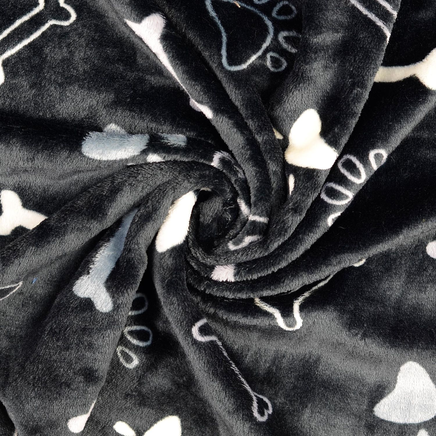 Pile morbido - double face zampe e ossa nero