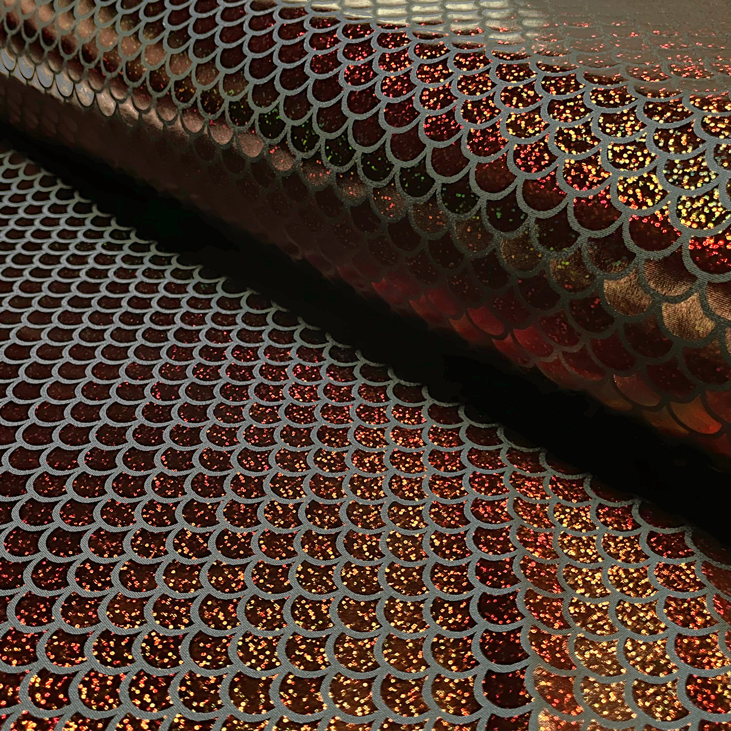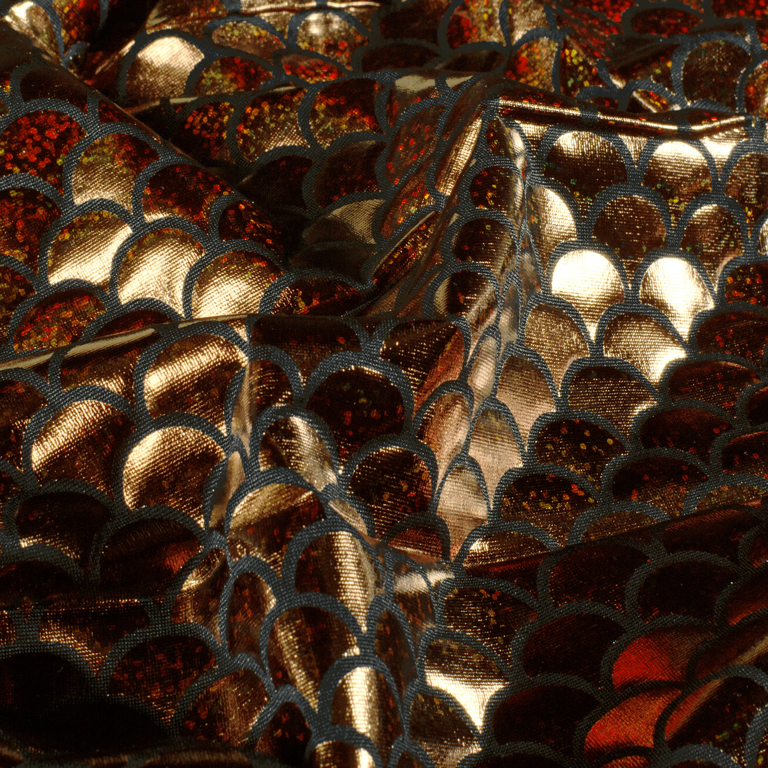 Immergiti nel luccicante mondo sottomarino: questo tessuto da carnevale con stampa sirena foil in elegante bronzo fa brillare ogni costume. Le squame lucenti, simili a quelle dei pesci, scintillano a seconda della luce in calde tonalità di bronzo e oro, creando un affascinante effetto metallico – perfetto per costumi che devono attirare l’attenzione sul palco o a ogni festa.