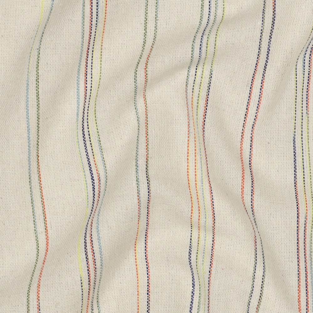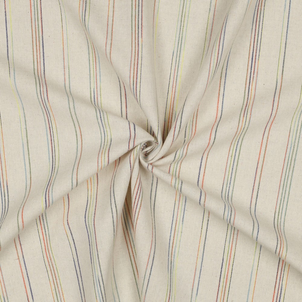 Un tessuto come una giornata estiva: questo tessuto per bluse e abiti entusiasma con allegre righe colorate su una base naturale. Sottili linee in giallo, blu, rosa, menta e calde tonalità della terra si alternano in modo armonioso e risultano allo stesso tempo vive e delicate – perfetto per chi ama il colore senza esagerare.