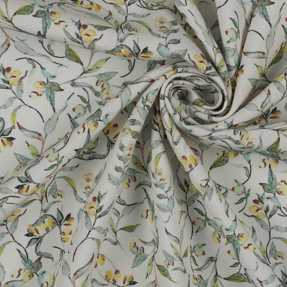 Viscosa - Stampa digitale Rami floreali Ecru